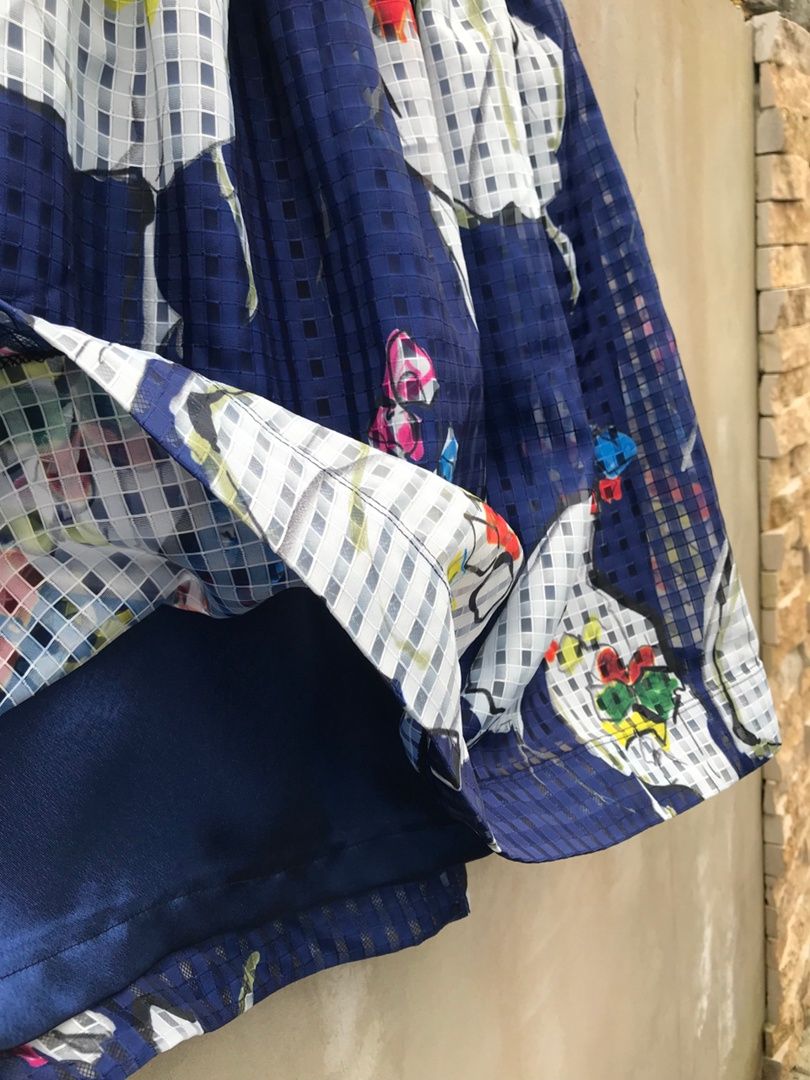 Пояс: на резинке. Подклад: из искуственного шелка темно-синего цвета.